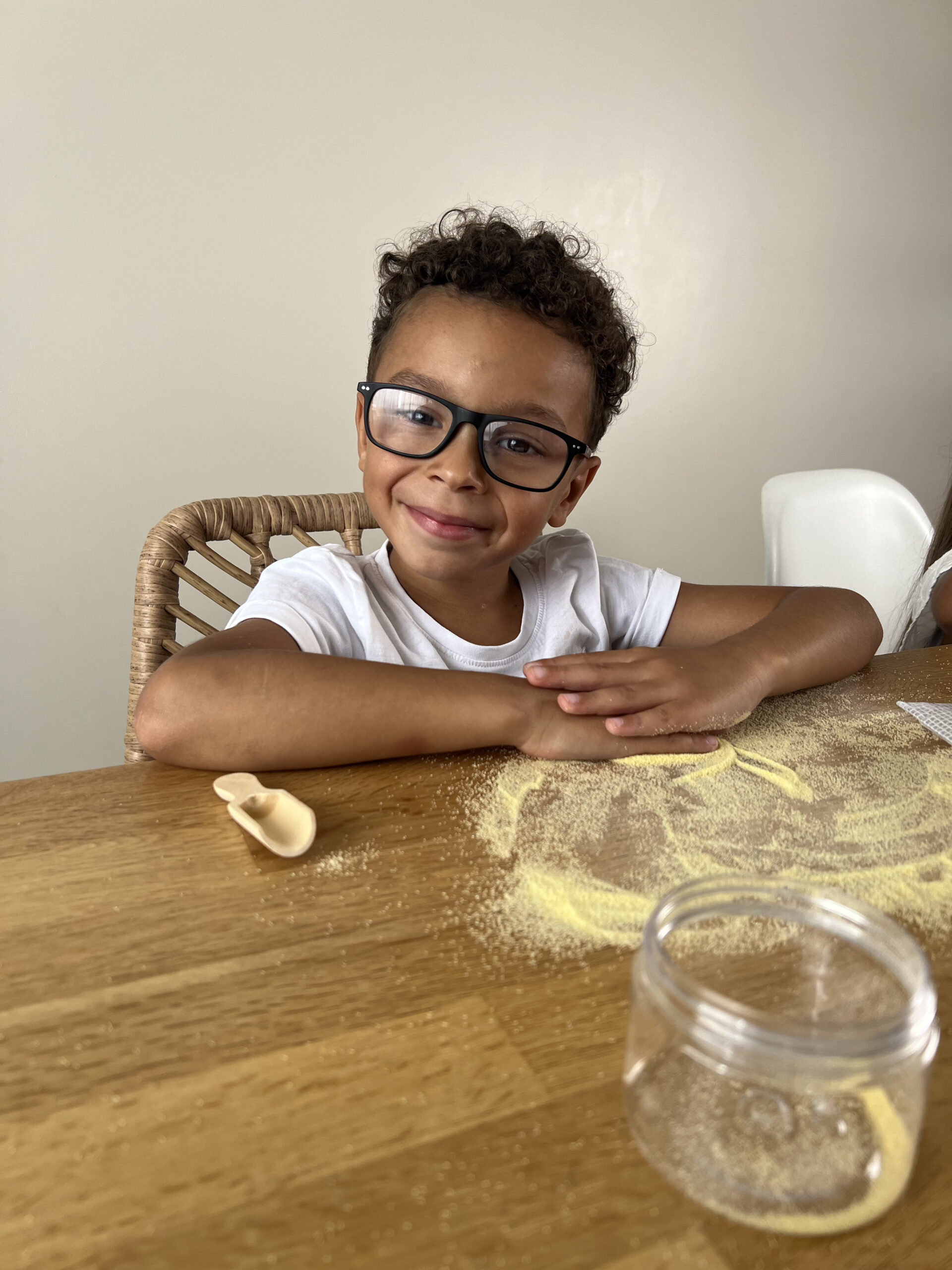 Le pot de sable : transvaser le sable d’un récipient à l’autre à l’aide de petites cuillères, sans dépasser.